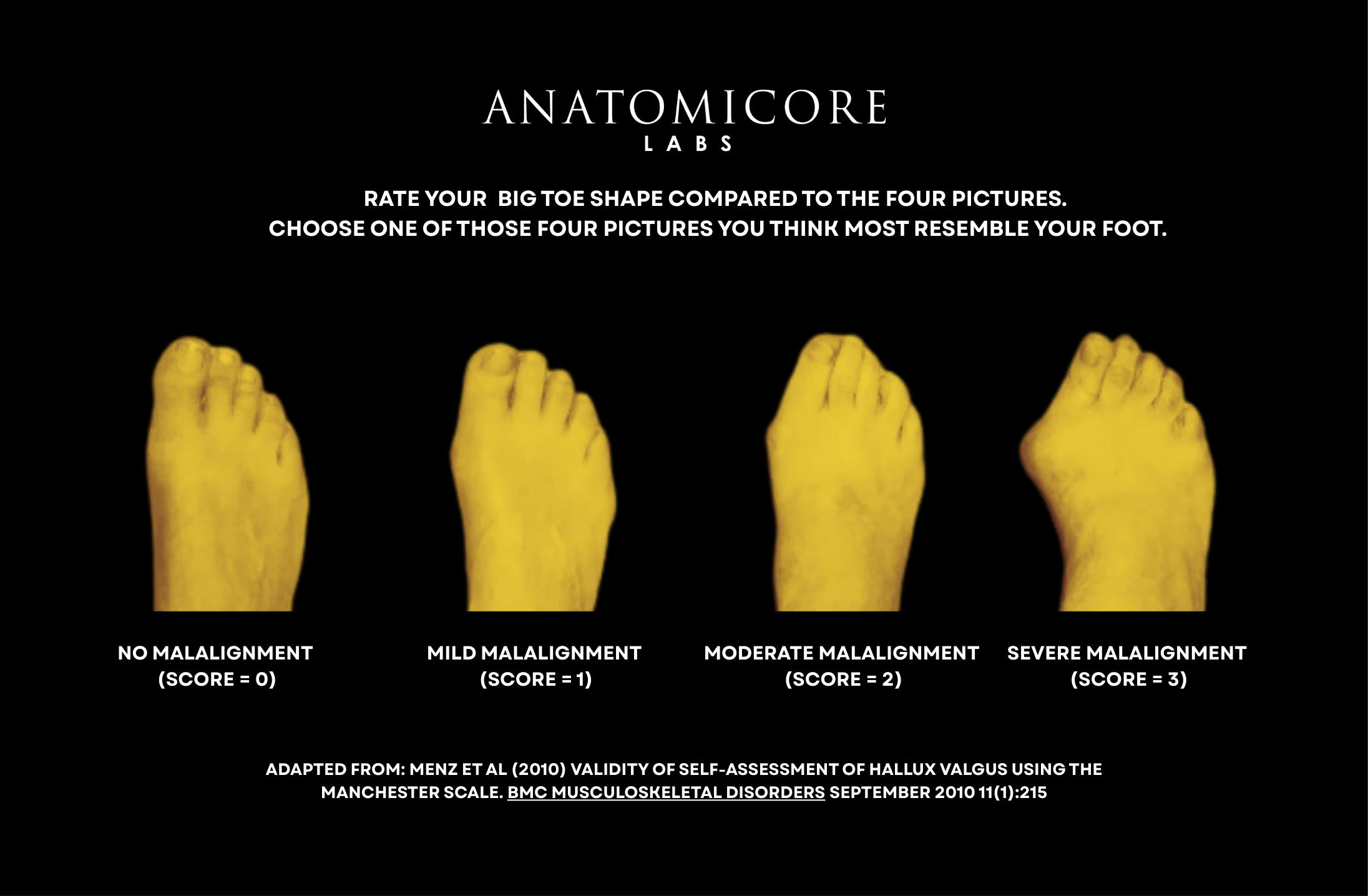 If you have large (score 3) bunions (see our bunion - technically called Hallux Valgus - self scoring chart below), then shape of the toe area on the Anatomicore footbed may not suit you. However, if you can wear Birkenstocks then you may still be able to wear the Anatomica Sandals.